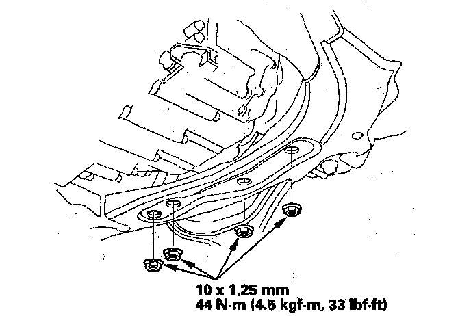 23. Install the transmission lower mount nuts.
