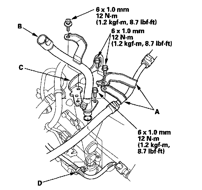 12. Remove the harness clamp (D), then remove the ATF dipstick guide pipe.