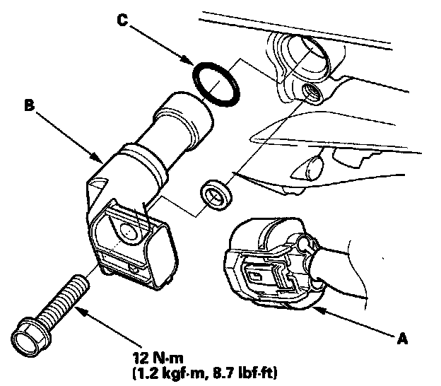 4. Install the parts in the reverse order of removal with a new O-ring (C).