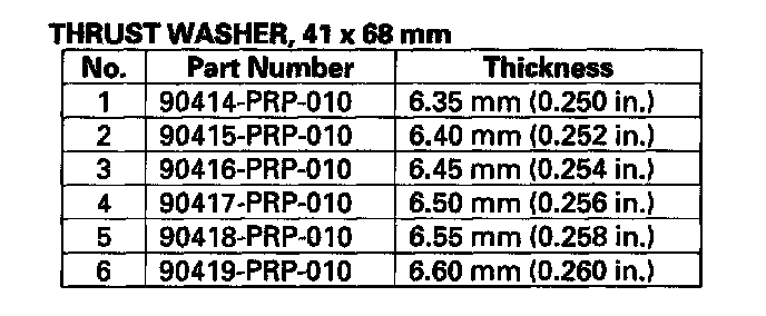 7. Select and install a new thrust washer, then recheck.