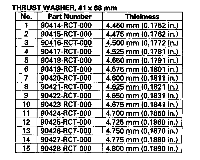 8. If the clearance is out of standard, remove the 41 x 68 mm thrust washer and measure its thickness (A).