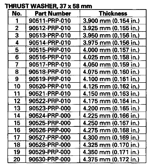 8. Select and install a new thrust washer, then recheck.