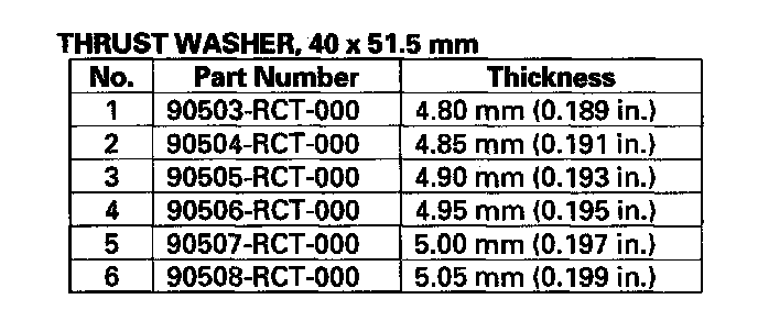 7. If the clearance is out of standard, remove the 40 x 51.5 mm thrust washer, and measure its thickness.