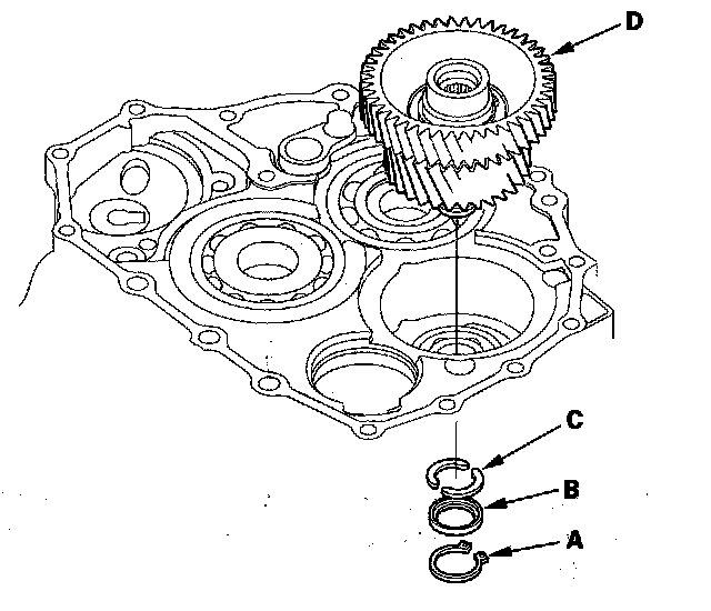 2. Remove the idler gear shaft/idler gear assembly (D) from the transmission housing.