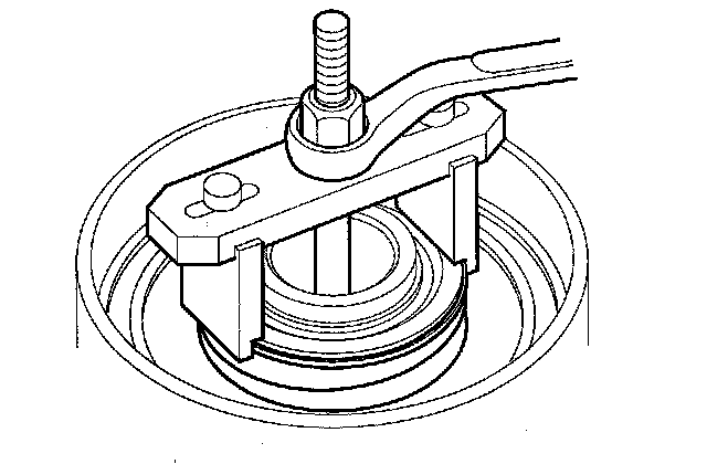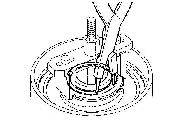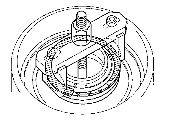 16. If either end of the clutch spring compressor attachment is set over an area of the spring retainer that is unsupported by the return spring, the retainer may be damaged.
