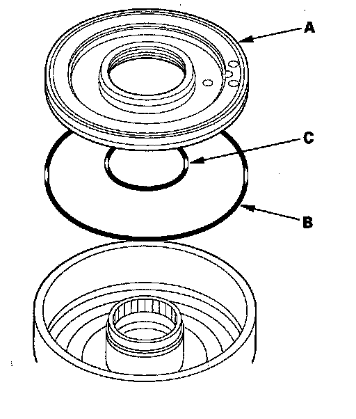 23. 4th and 5th clutches: Remove the clutch piston (A), and remove the outer O-ring (B) and the inner O-ring (C) from the piston.