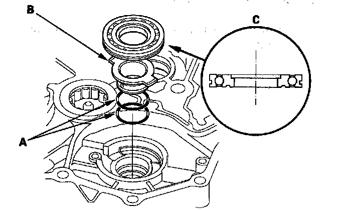 4. Install a new secondary shaft bearing (C) in the direction shown.