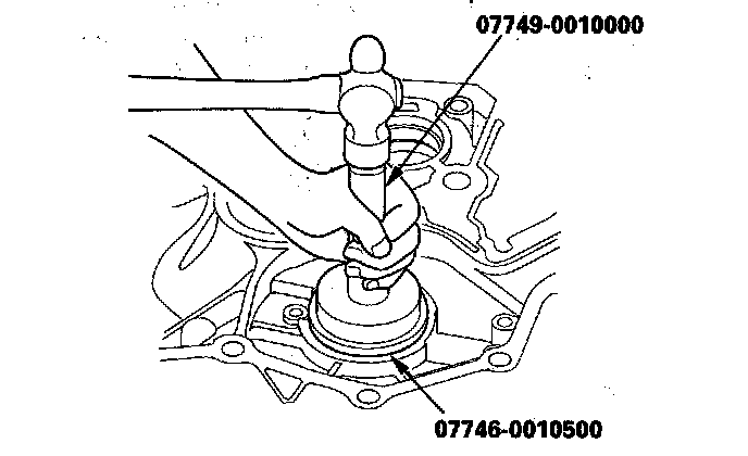 2. Install a new mainshaft bearing until it bottoms in the torque converter housing using the driver and the 62 x 68 mm attachment.