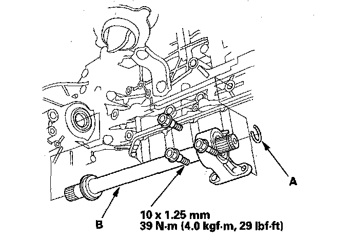 47. Connect the output shaft (countershaft) speed sensor connector (A) and the input shaft (mainshaft) speed sensor connector (B).