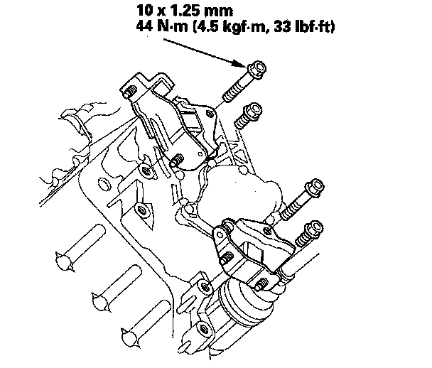 5. Attach the transmission to the engine, then install the rear transmission housing mounting bolts.