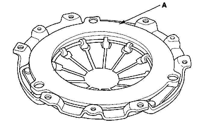 4. Inspect the fingers of the diaphragm spring (A) for wear at the release bearing contact area.
