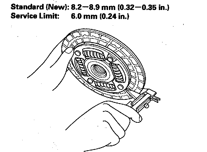 9. Measure the clutch disc thickness. If the thickness is less than the service limit, replace the clutch disc.