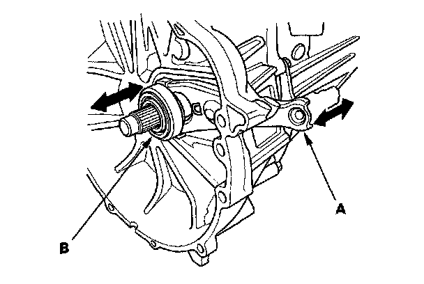 8. Move the release fork (A) right and left to make sure that it fits properly against the release bearing (B) and that the release bearing slides smoothly. Wipe off any excess grease.