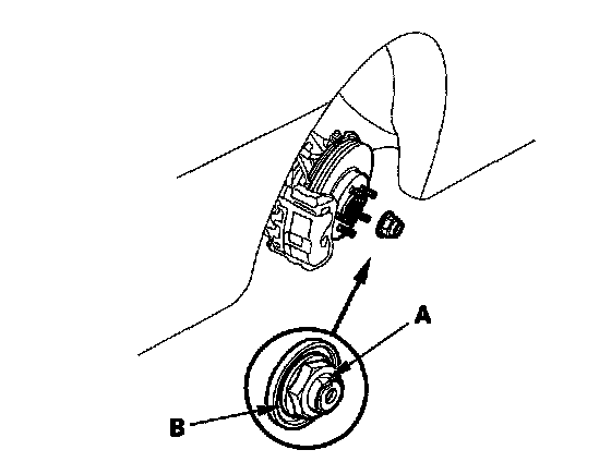 3. Lift up the locking tab (A) on the spindle nut (B), then remove the nut.