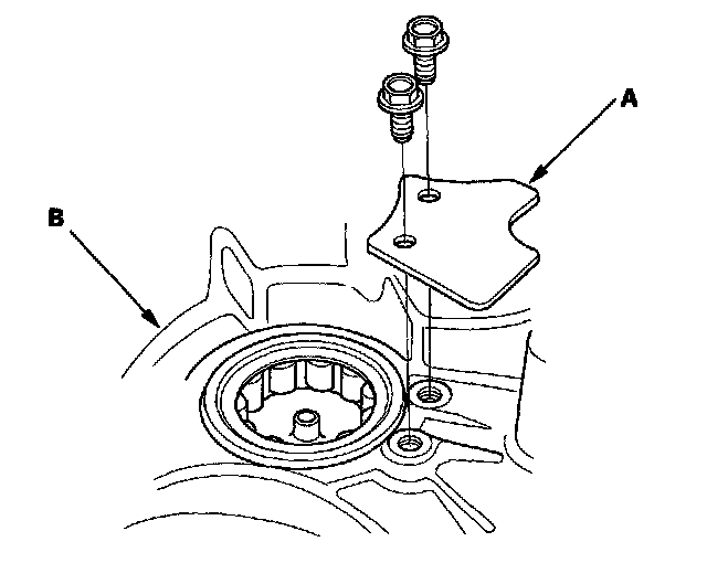 1. Remove the bearing set plate (A) from the clutch housing (B).