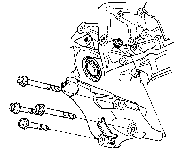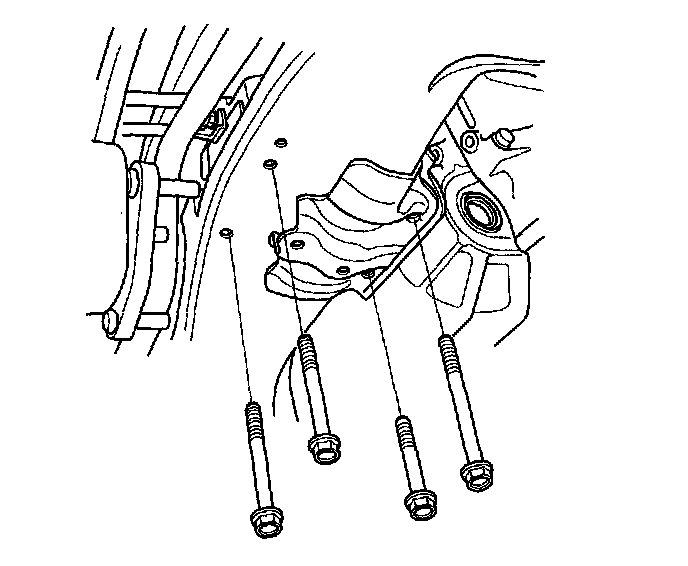 35. Remove the rear engine mount lower bracket mounting bolts.