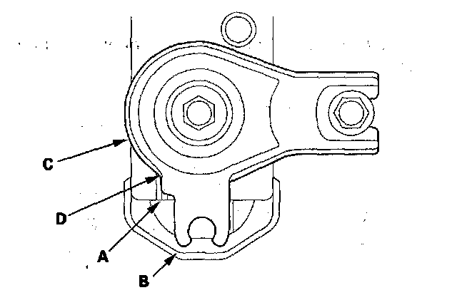 18. Install the engine support hanger (A) to the vehicle, and attach the hook (B) to the engine hanger adapter (C). Tighten the wingnut (D) by hand, to lift and support the engine.