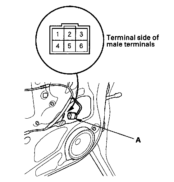 2. Disconnect the 6P connector (A) from the power window motor.