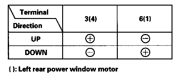 3. Test the motor by connecting battery power and ground according to the table. When the motor stops running, disconnect one lead immediately.