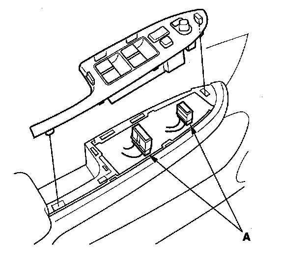 2. Disconnect the power mirror and power window master switch connectors (A).