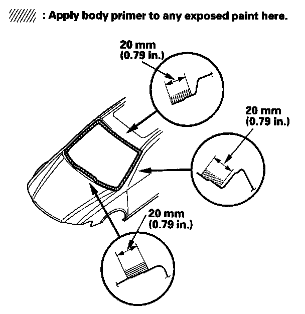 - Never touch the primed surfaces with your hands. If you do, the adhesive may not bond to the windshield properly, causing a leak after the windshield is installed.
