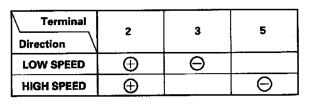 4. Test the motor by connecting battery power and ground according to the table. If the motor does not run or fails to run smoothly, replace the motor.