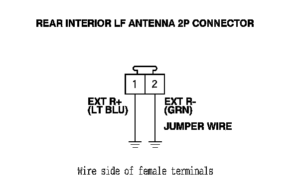 8. Connect rear interior LF antenna 2P connector terminals No. 1 and No. 2 to body ground with jumper wires.