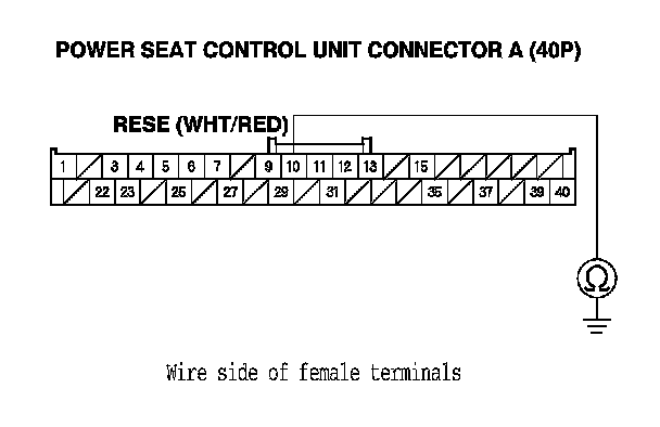 14. Check for continuity between power seat control unit connector A (40P) terminal No. 10 and body ground.