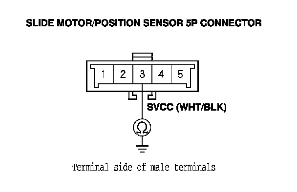 9. At the sensor side, check for continuity between the SVCC terminal of each position sensor and body ground (motor body).