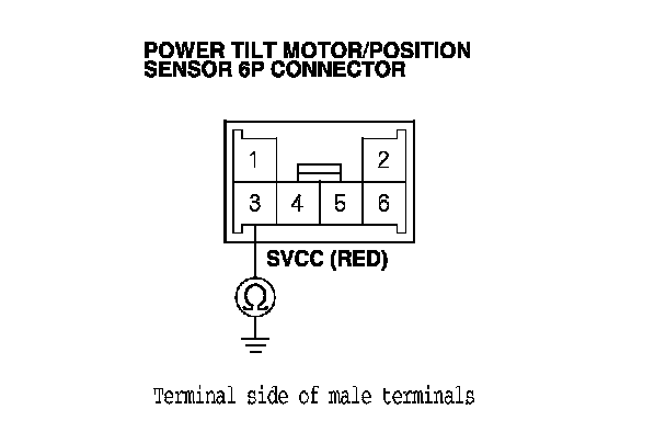 11. At the sensor side, check for continuity between the power tilt motor/position sensor 6P connector terminal No. 3 and body ground (motor body).