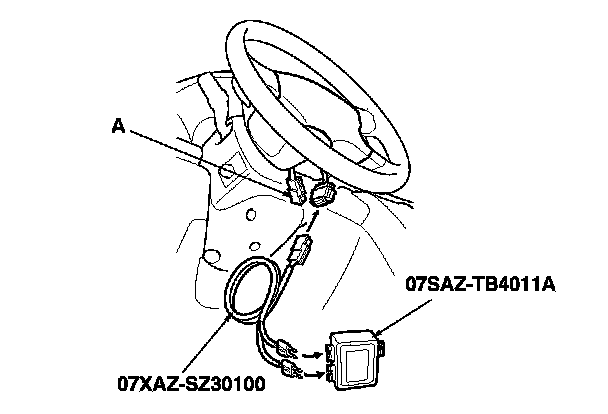 4. Disconnect the driver's airbag 4P connector (A) from the cable reel.