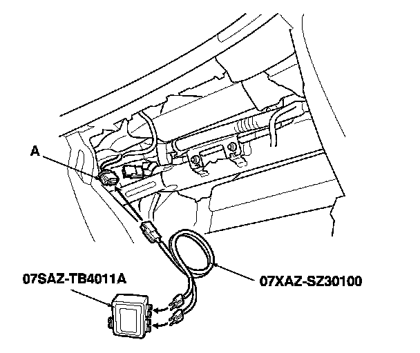 4. Disconnect the front passenger's airbag 4P connector (A) from the dashboard wire harness A.