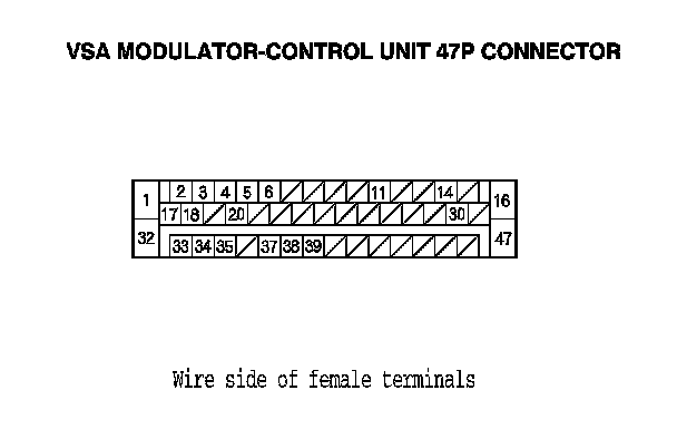 YES - Check for loose terminals or poor connections at the VSA modulator-control unit 47P connector. If connections are good, replace the VSA modulator-control unit, Service and Repair and recheck.