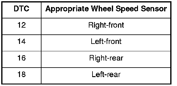 DTC 12, 14, 16, 18: Wheel Speed Sensor (Electrical Noise/Intermittent Interruption)