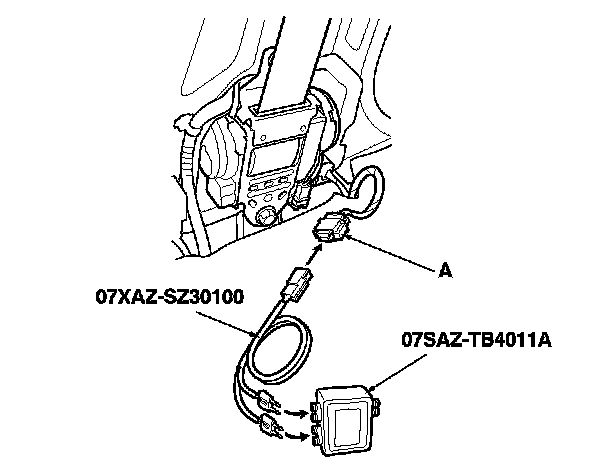 4. Disconnect the right side wire harness 4P connector (A) from the front passenger's seat belt tensioner.