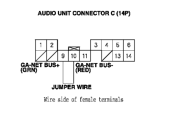 9. Connect the audio unit connector C (14P) terminals No. 9 and No. 10 with a jumper wire.