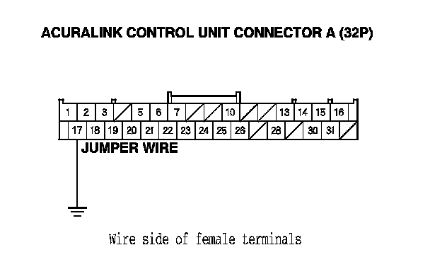 12. Connect the AcuraLink control unit connector A (32P) terminal No. 17 to body ground with a jumper wire.