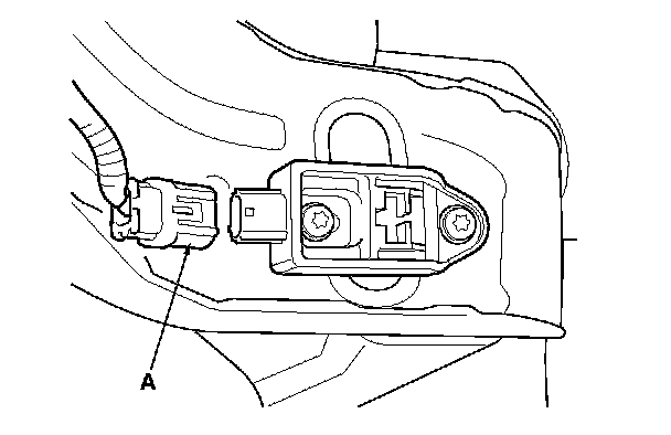 6. Disconnect the engine compartment wire harness 2P connector (A) from the right front impact sensor.