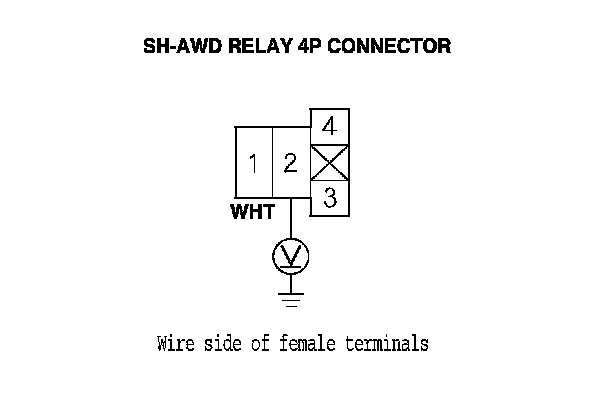 15. Measure the voltage between SH-AWD relay 4P connector terminal No. 2 and body ground.