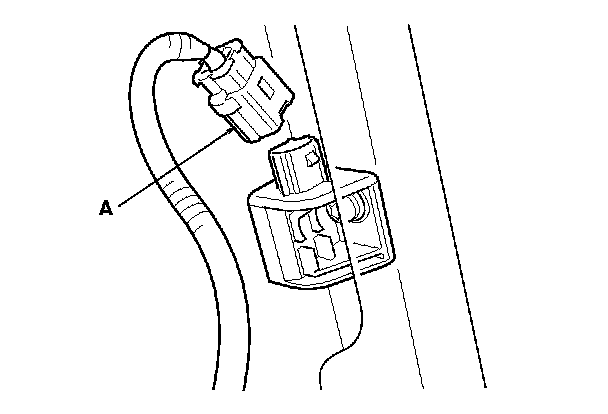 5. Disconnect the left side wire harness 2P connector (A) from the left side impact sensor (second).