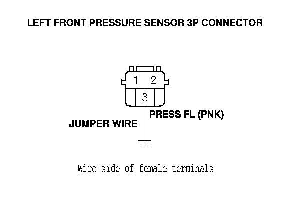 10. Connect the left front pressure sensor 3P connector terminal No. 2 to body ground with a jumper wire.