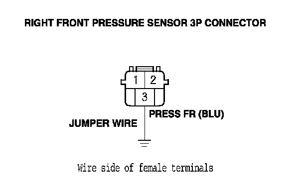10. Connect the right front pressure sensor 3P connector terminal No. 2 to body ground with a jumper wire.