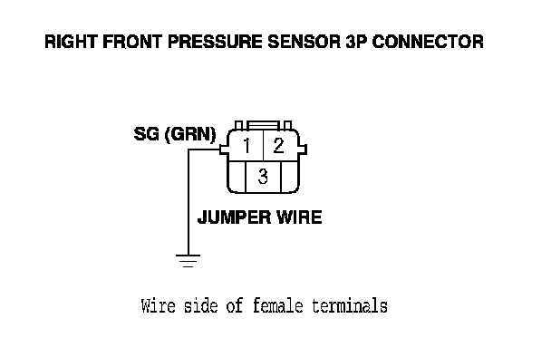 23. Connect the right front pressure sensor 3P connector terminal No. 1 to body ground with a jumper wire.