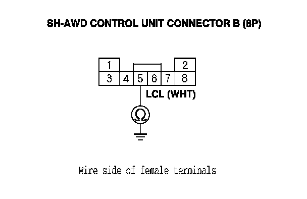 10. Check for continuity between SH-AWD control unit connector terminal B5 and body ground.