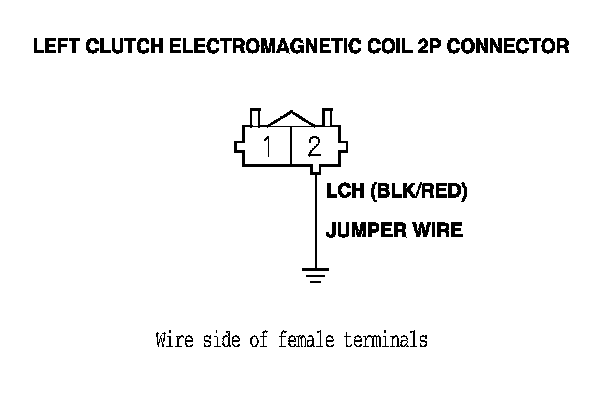 11. Remove the jumper wire from the left clutch electromagnetic coil 2P connector terminal No. 1.