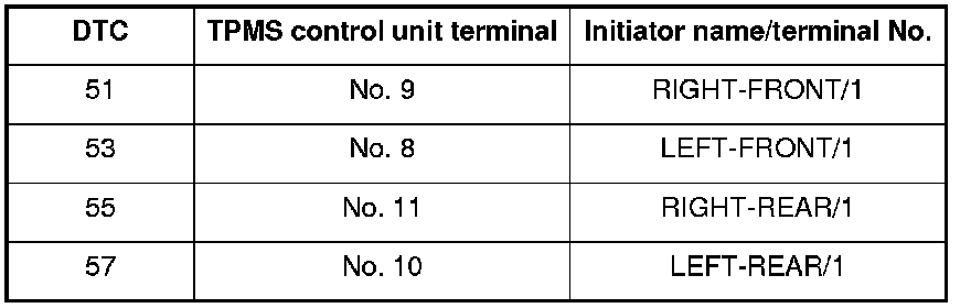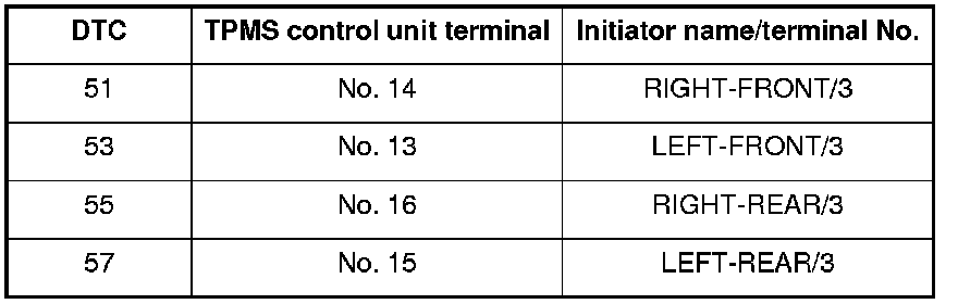 TPMS DTC Troubleshooting: 51, 53, 55, 57