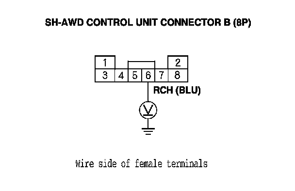 11. Measure the voltage between SH-AWD control unit connector terminal B6 and body ground.