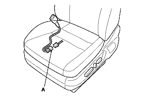 6. Disconnect the left side wire harness or driver's seat wire harness 3P connector from the driver's seat belt buckle switch 3P connector (A).