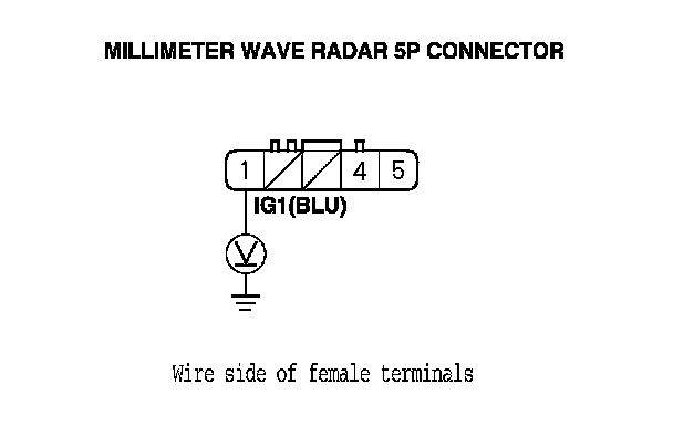 13. Measure the voltage between millimeter wave radar 5P connector terminal No. 5 and body ground.