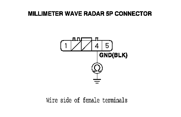 11. Check for continuity between the millimeter wave radar 5P connector terminal No. 4 and body ground.